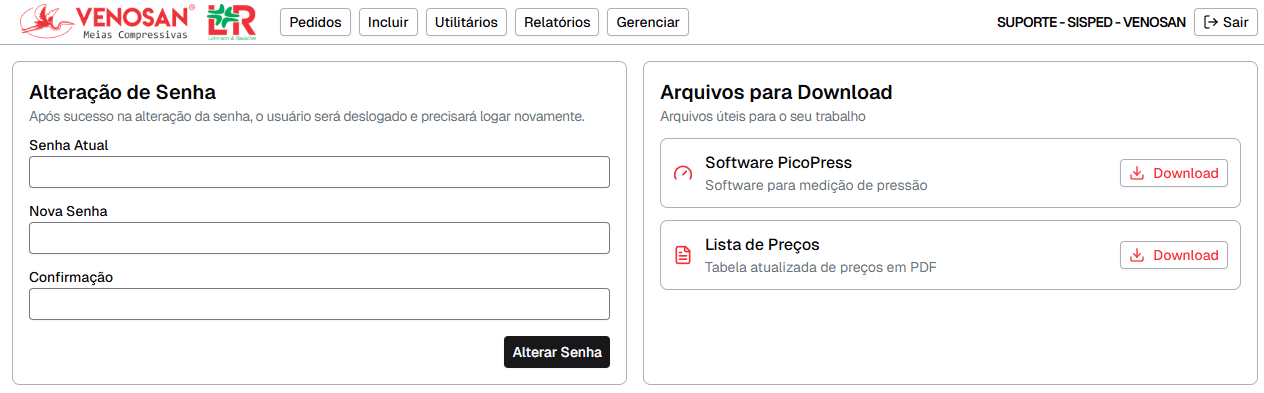 Nesta seção, é possível realizar a alteração da senha de usuário. Basta informar a senha atual, digitar a nova senha desejada e confirmar a alteração.